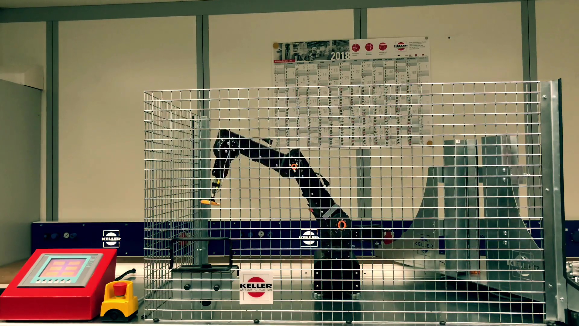 For a project a Robolink robot arm was used to issue objects from a warehouse. The robot is to pick up an object provided (e.g. consumables) and then place it in the output. The output here can also represent a person's hand into which the robot drops or deposits the object.